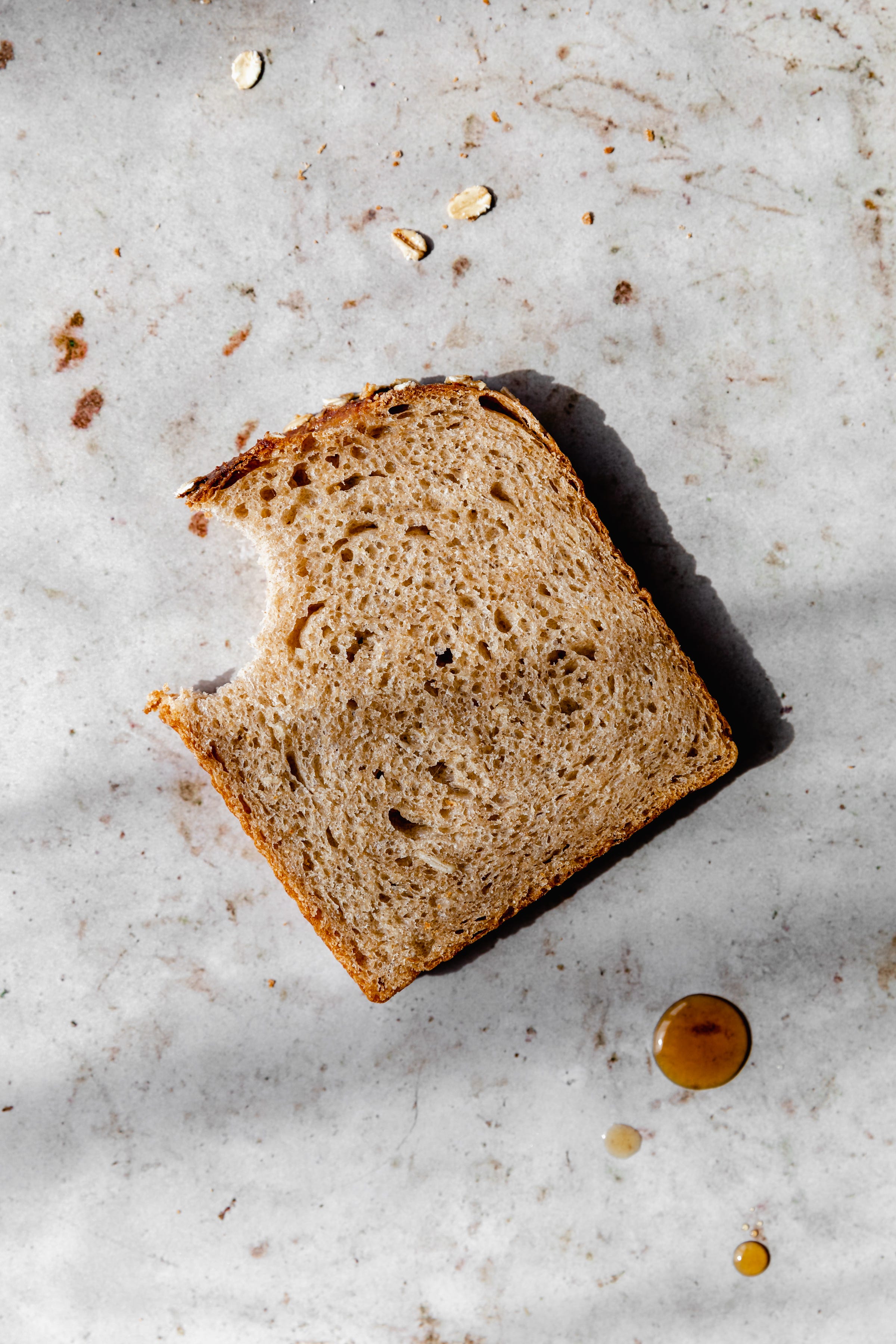 I always like to have a loaf of fresh sandwich bread lying around for a quick lunchtime panini or a PB&J pick-me-up in the afternoon. A pan loaf, as this shape is called, is also one of the most foolproof for a beginning bread baker; the pan does most of the work for you! This recipe combines the goodness of whole wheat flour, nuttiness of oats, and autumnal sweetness of maple syrup for a soft, squishy slice that is perfect at any time of day, or in any season.