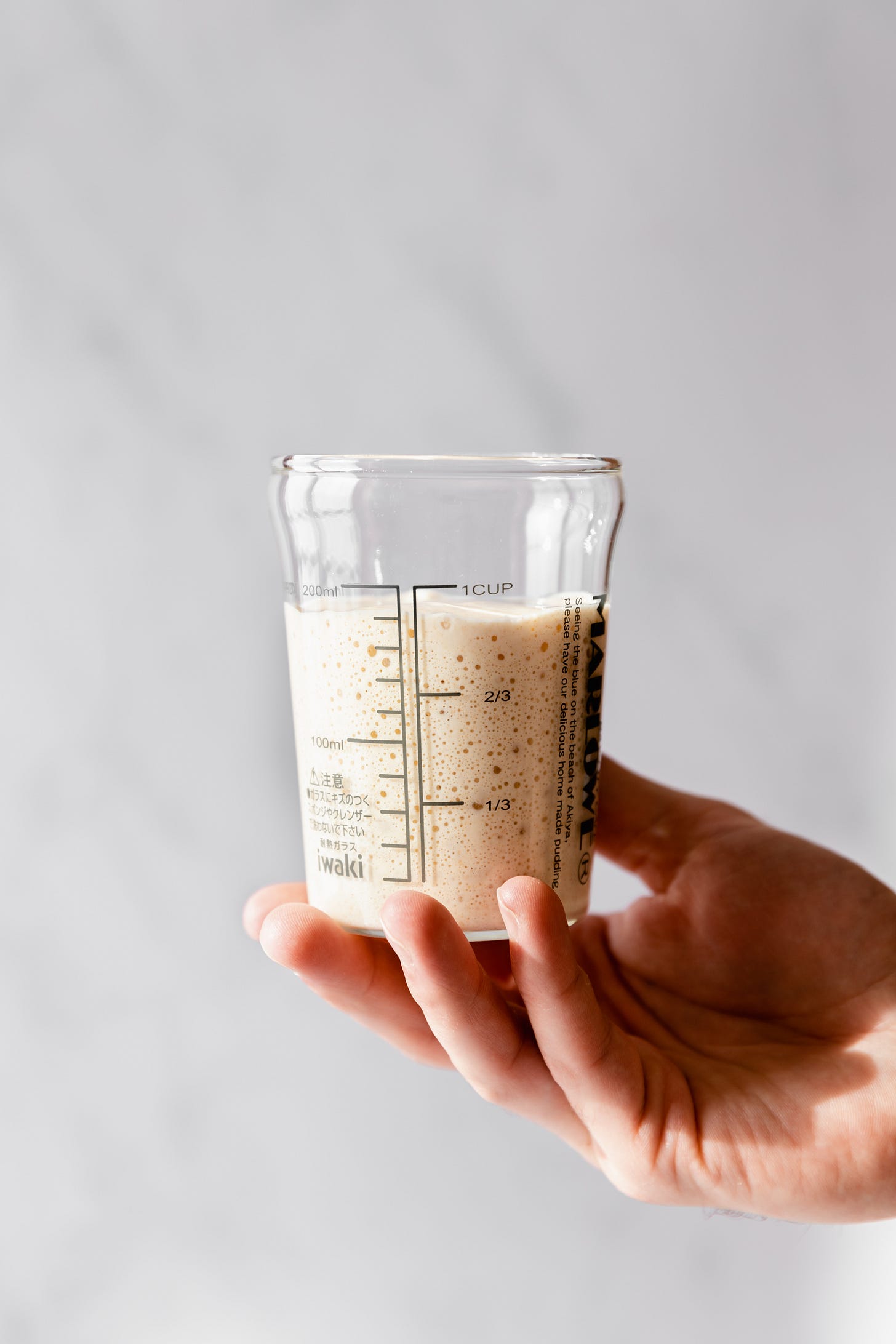 5. Place the jar in the proofer. Cover and leave to ferment for 12 hours (the starter should double in size over this period)